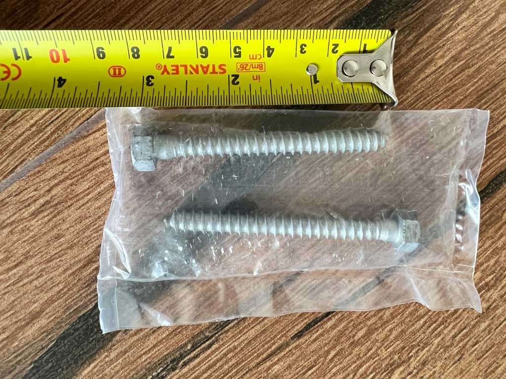 - Mounting screws were 7 cm long and about 6 mm wide.