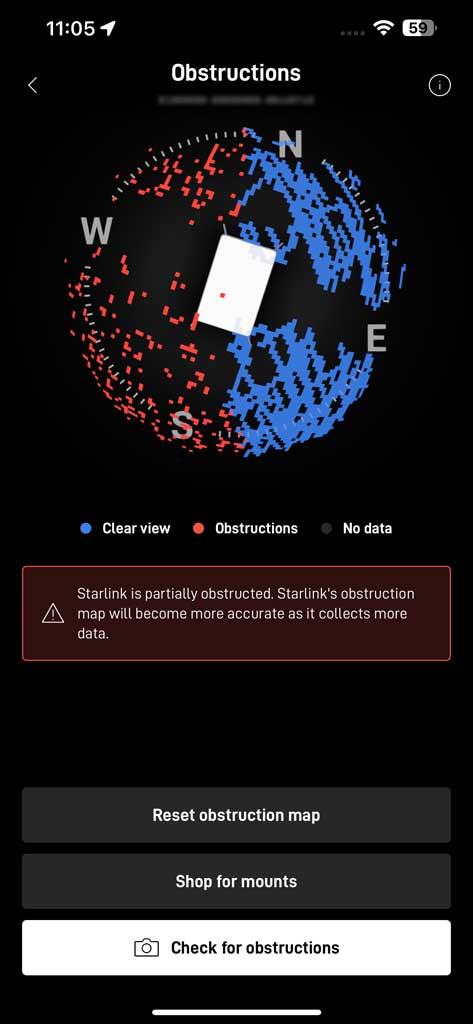 This is how the obstruction map from the StarLink app looked like for my setup above: