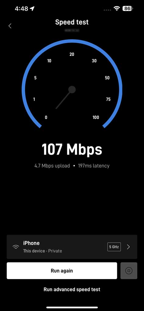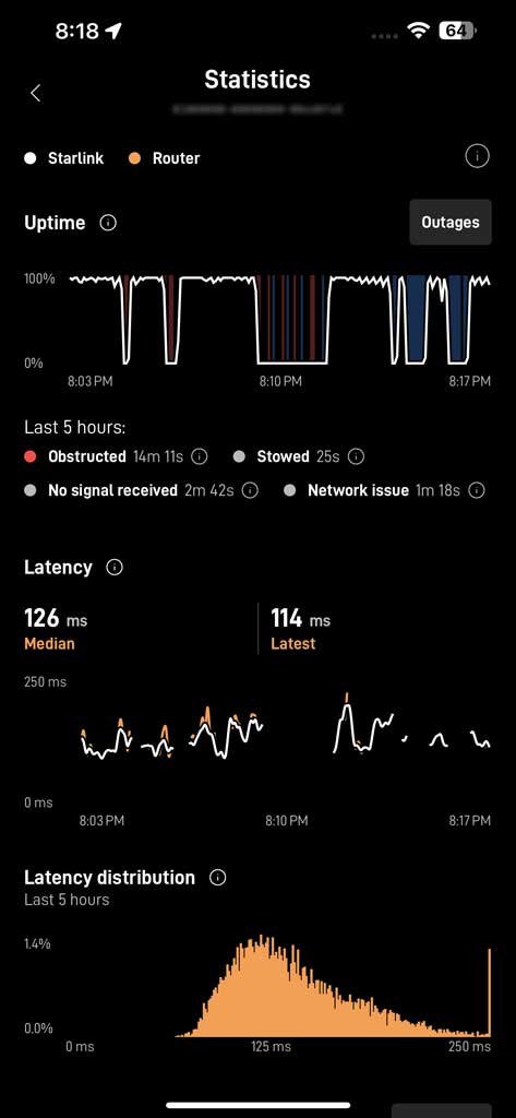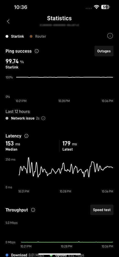 Also note that the internet speeds that the StarLink app was giving me were way off from what I would get from other speed tests: